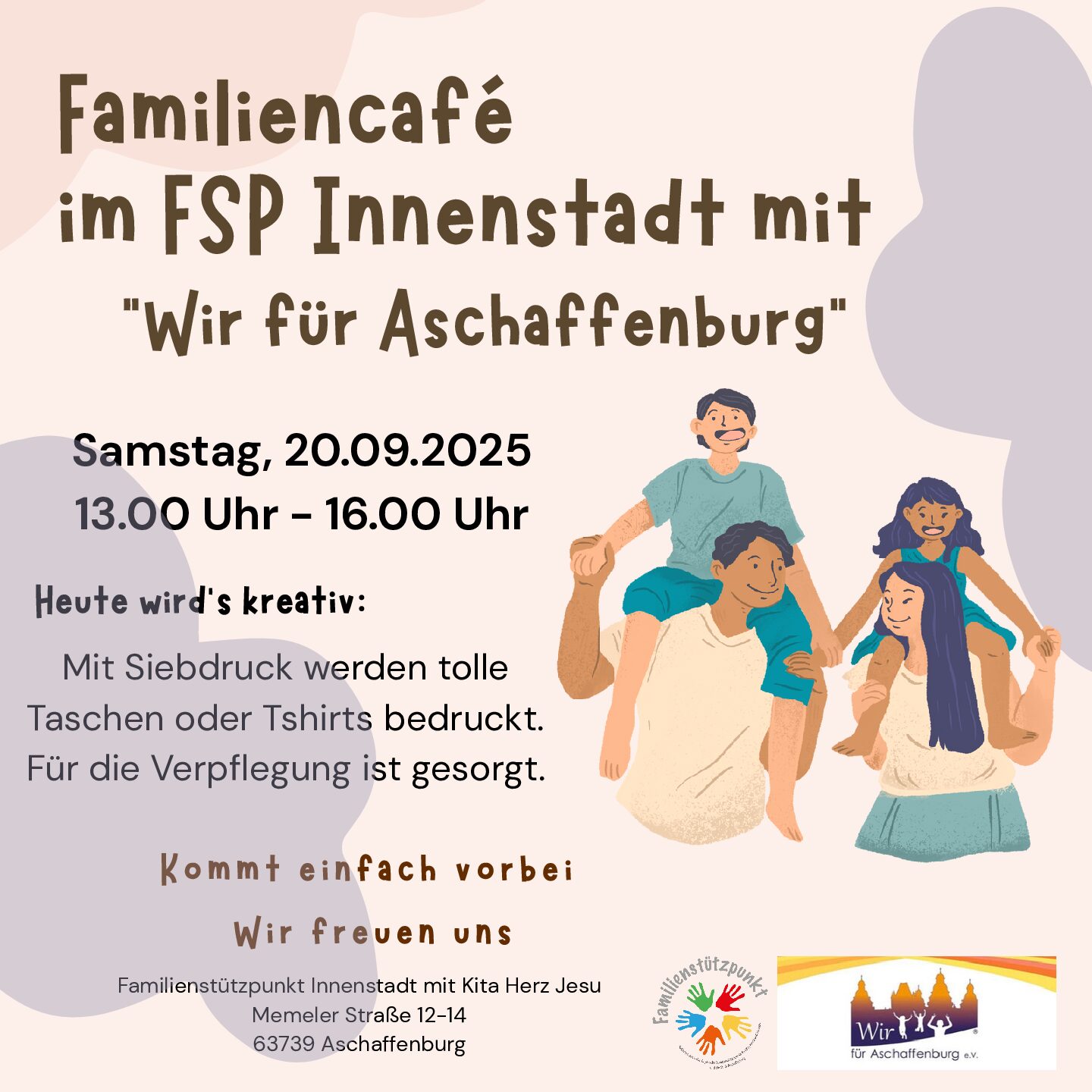 20Sep13:0016:00Familiencafé mit "Wir für Aschaffenburg"13:00 - 16:00(GMT+02:00) Memelerstraße 14